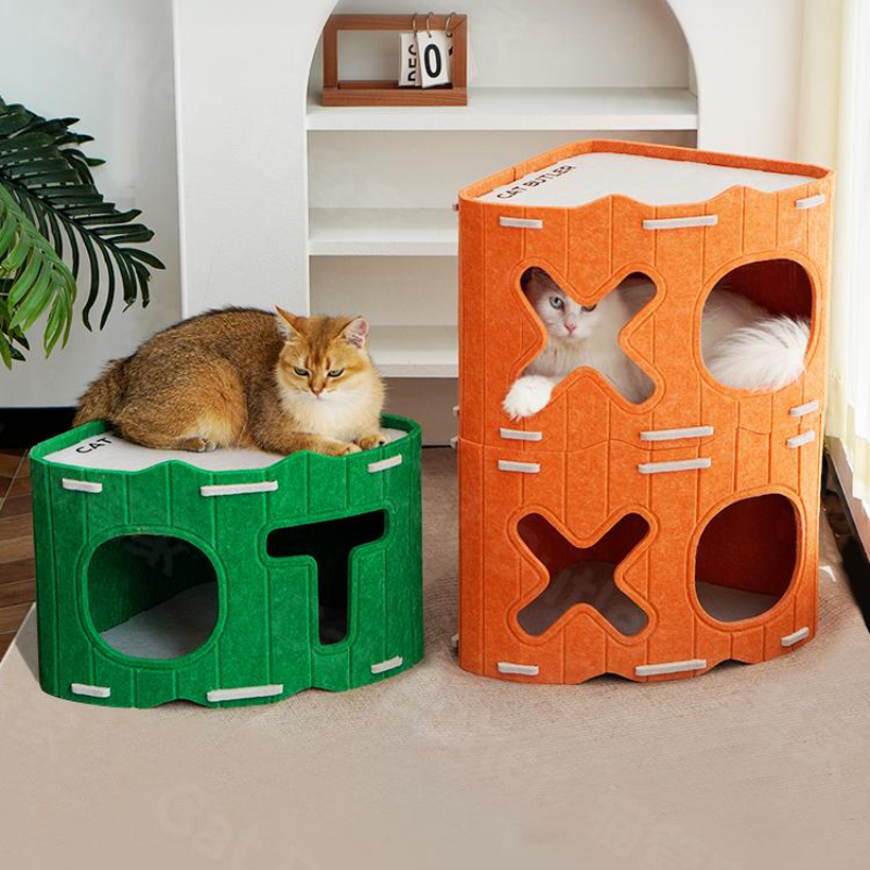 Transform your home into the ultimate feline sanctuary with our Felt Cat Bed Stackable Tree House. Designed with both your cat's comfort and your aesthetic in mind, these premium stackable beds create a customizable retreat that grows with your pet's needs. The durable felt construction provides warmth and security, while the innovative stacking design maximizes vertical space—giving your beloved companion multiple levels to explore, rest, and claim as their own. Don't settle for ordinary cat furniture when you can provide a versatile hideaway they'll actually use.